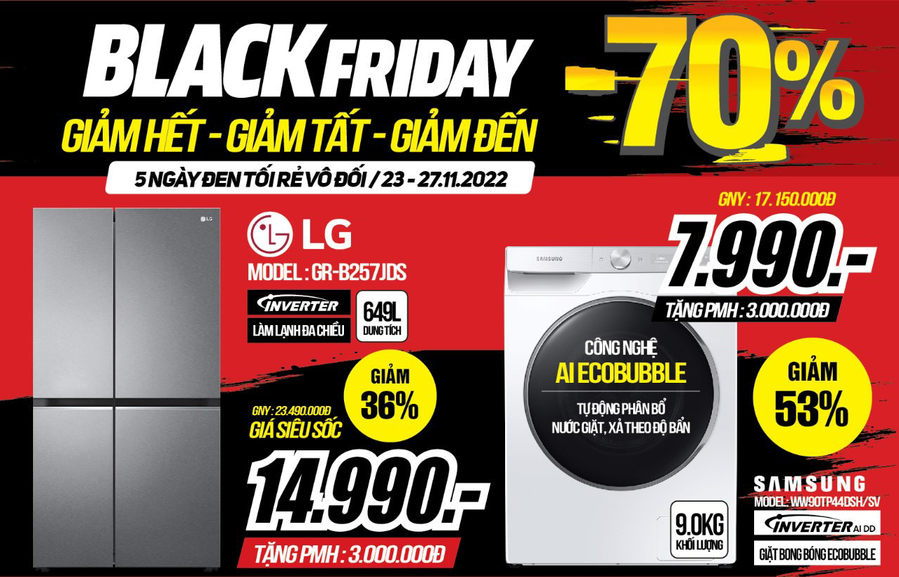 Black Friday: Siêu thị điện máy sale đến 70% tất cả sản phẩm